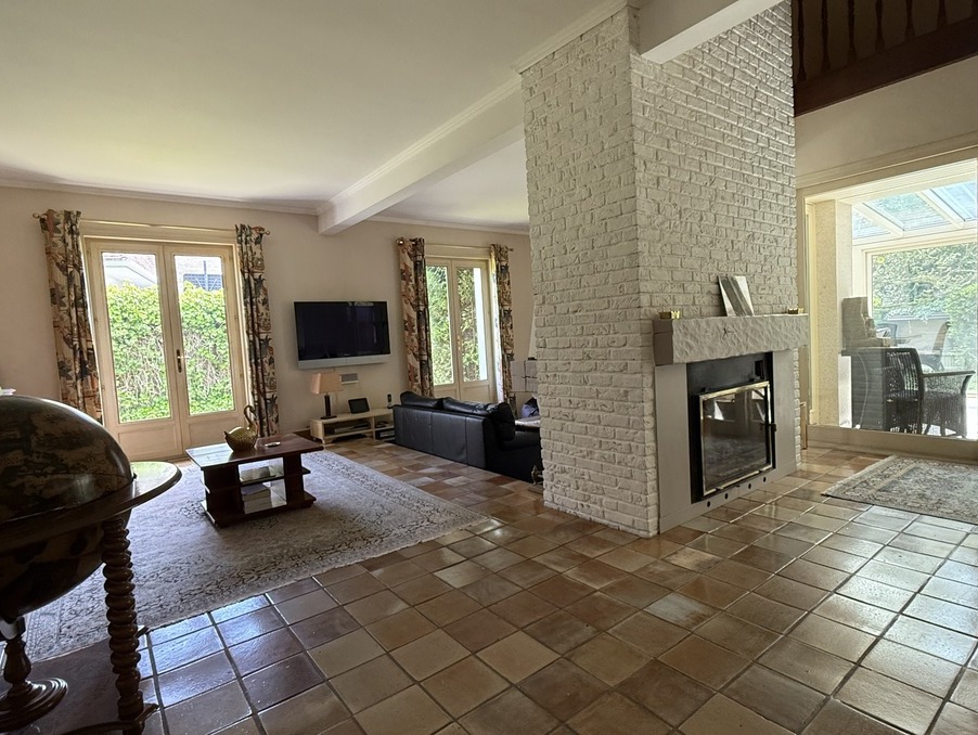 Maison d'architecte de 224m2, bâtie sur une parcelle de 714 m2 . Au rez de chaussée : vaste hall d'entrée, superbe pièce de vie de + 50 m2 avec cheminée centrale à insert. Cuisine amenagée et équipée séparée. Une chambre, buanderie et wc